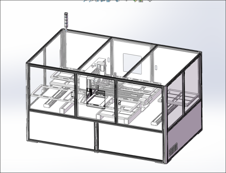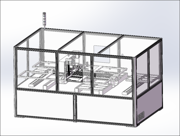 此設(shè)備為一款檢查設(shè)備非標(biāo)自動(dòng)化設(shè)備,連接流水線,自動(dòng)送料,機(jī)器人帶視覺系統(tǒng)自動(dòng)移載,多工位自動(dòng)協(xié)作檢測,自動(dòng)收料